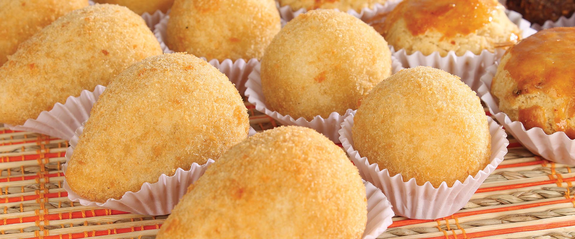 - Risoles: presunto e queijo, carne, queijo e palmito